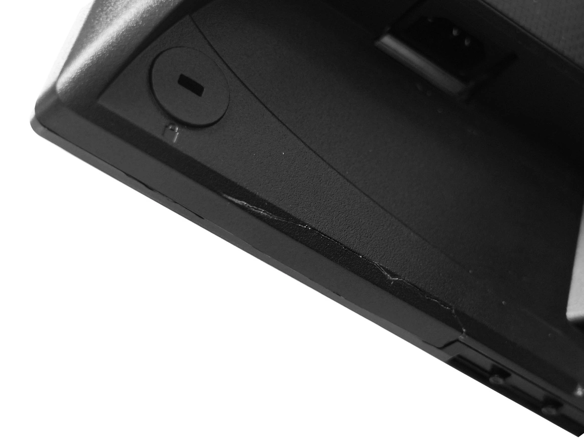 - Pęknieta i odstająca dolna część obudowy