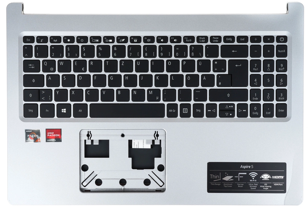 - Palmrest z dolną obudową do laptopa Acer Aspire A515-45 N18Q13. Stan: z demontażu używanych laptopów / klawiatura w pełni sprawna / bez touchpada i śrubek do skręcenia obudowy / zagięcie w prawym dolnym rogu / pęknięcia w rogu na spodzie obudowy