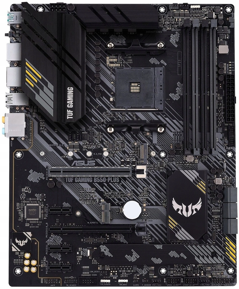 - Płyta główna ATX ASUS TUF Gaming B550-Plus AMD Socket AM4 / 90MB14G0-M0EAY0 / Stan: UŻYWANA / Nadpalony element na płycie przy oznaczeniu "COM DEBUG" - niefunkcjonalny port COM / nadłamany przycisk flash bios / Opakowanie: zastępcze
