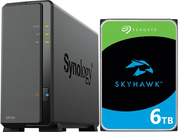 Serwer NAS Synology DiskStation DS124 z dyskiem HDD Seagate SkyHawk o pojemności 6TB
