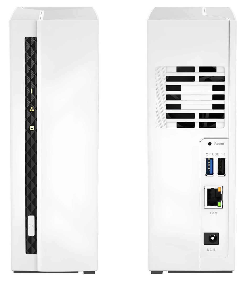 - Złącza: 2 x USB 3.2 Gen.1 Typu A / 1 x USB 2.0 Typu A / 1 x RJ45 (Gigabit Ethernet) / 1 x DC-in (zasilanie)